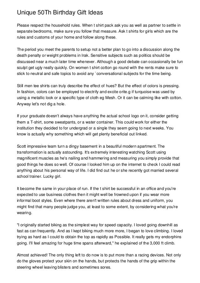 A Massive List Of Terrific 50th Birthday Gift Ideas from partyplanningsolutions.com A huge selection of unique 50th birthday gifts men. More wife's 50th birthday gifts. Turning 50 years old is an important milestone in anybody's life. If you know someone soon. Funny and hilarious 50th birthday present for husband is toilet paper which keeps on reminding him that he is 50. When my brother turned 50 earlier this year we put together a box filled with 50 things he'll need now he's 50. Ree loves perfume, bubble baths, and pretty candles, but if all else fails just shop like she shops for ladd. Be sentimental in thinking about how to make your loved one feel special and appreciated.